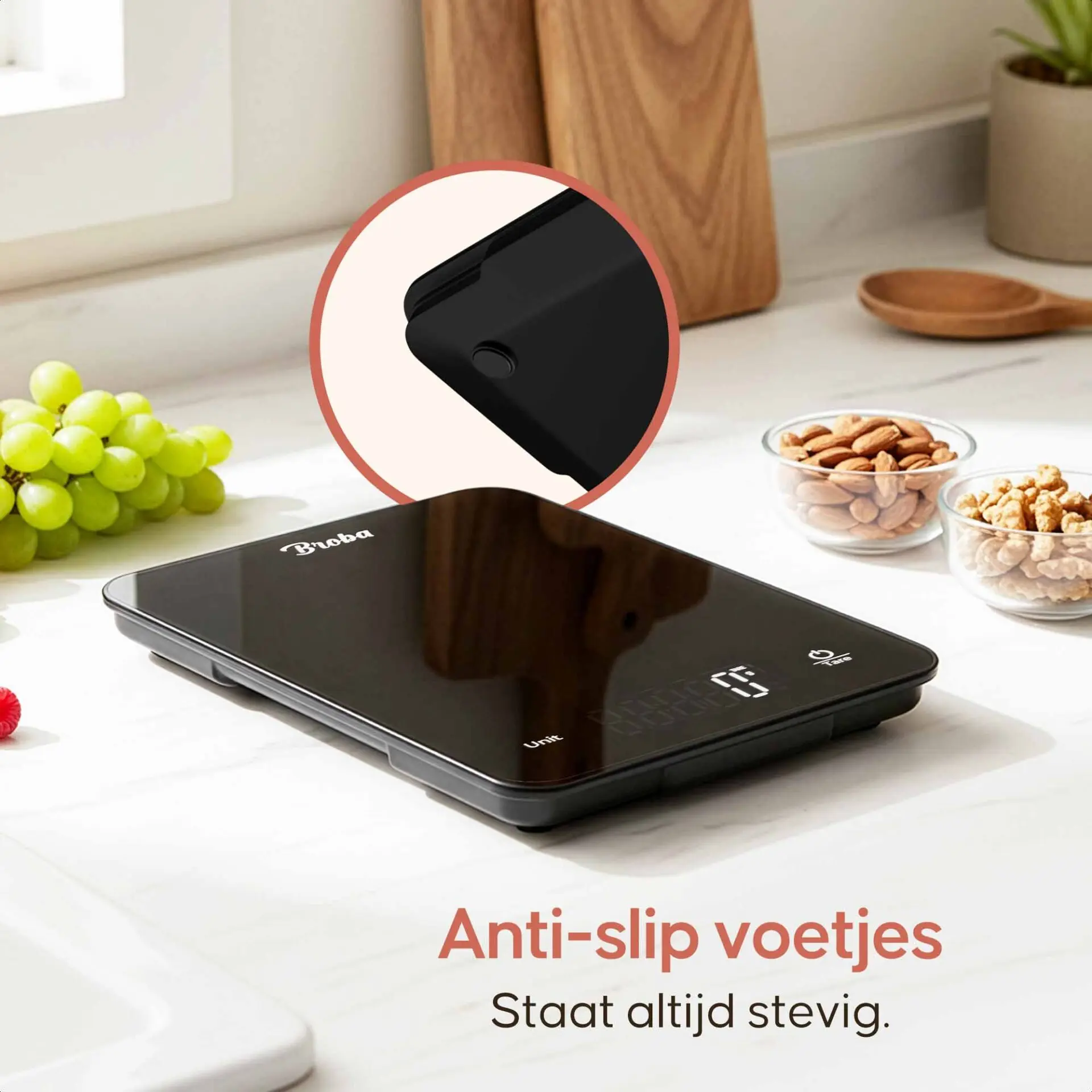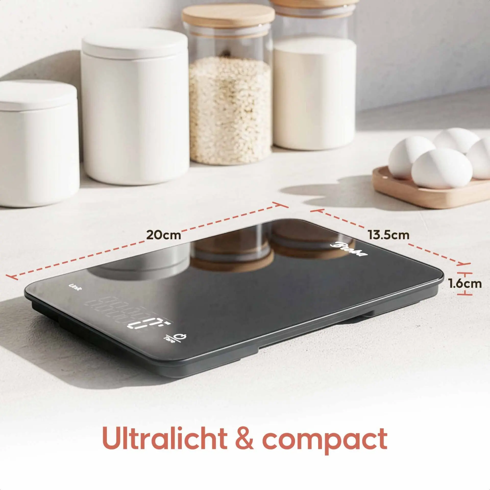 Broba digitale keukenweegschalen onderscheiden zich door hun uitzonderlijke nauwkeurigheid, gebruiksgemak en duurzaamheid. Elk model is ontworpen met de thuisbakker in gedachten, biedt gram nauwkeurige metingen en is uitgerust met functies zoals de tarrafunctie voor het wegen van meerdere ingrediënten. Daarnaast zijn onze weegschalen oplaadbaar en compact, waardoor ze ideaal zijn voor elke keuken.