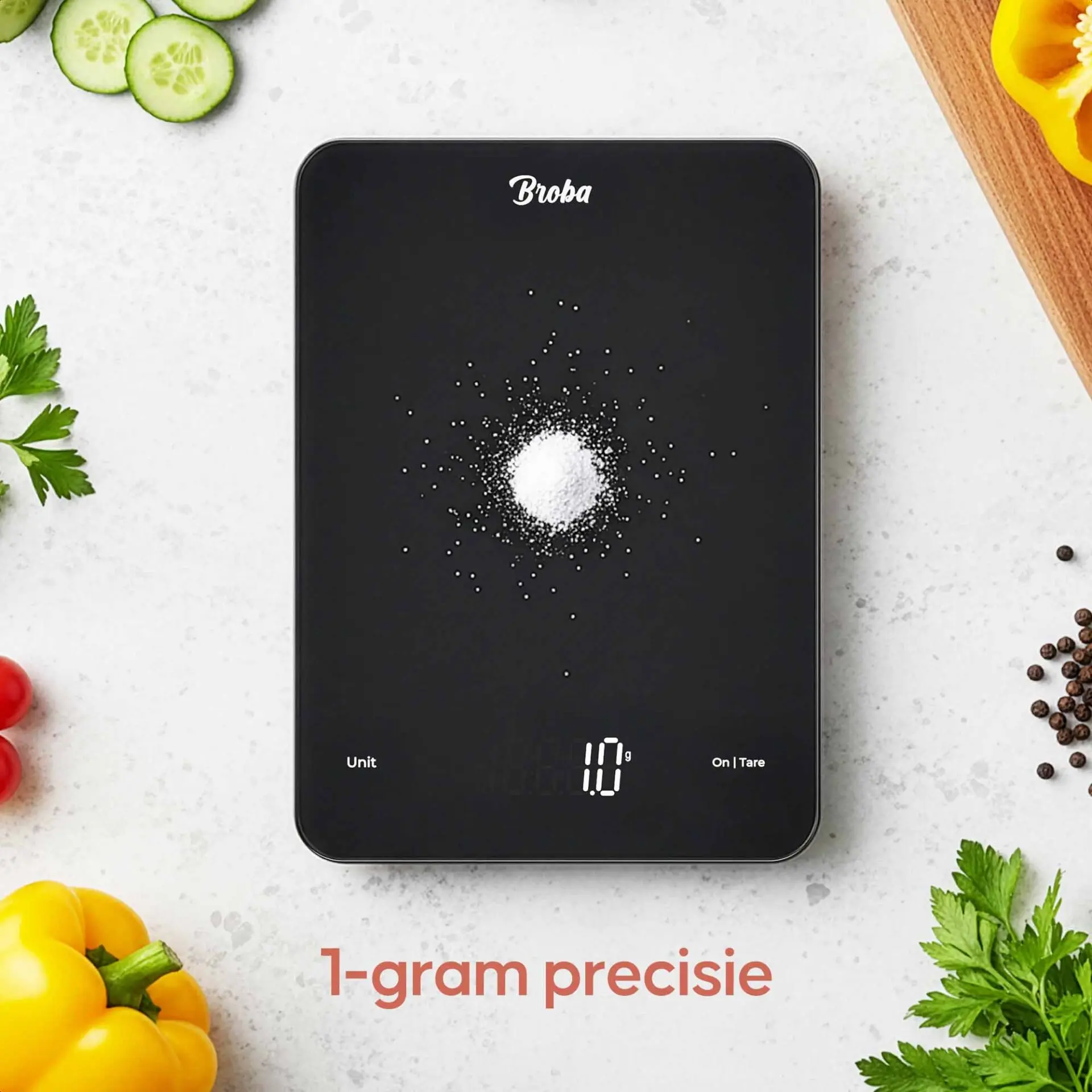 Stap in een wereld waar elke meting telt en elk recept de potentie heeft om een meesterwerk te worden. Met de Broba digitale keukenweegschaal wordt elke bakbeurt een stap dichter bij de bakperfectie die je altijd al hebt nagestreefd. Begin aan een reis waar precisie en passie samenkomen, en transformeer je bakkunsten van goed naar uitzonderlijk.