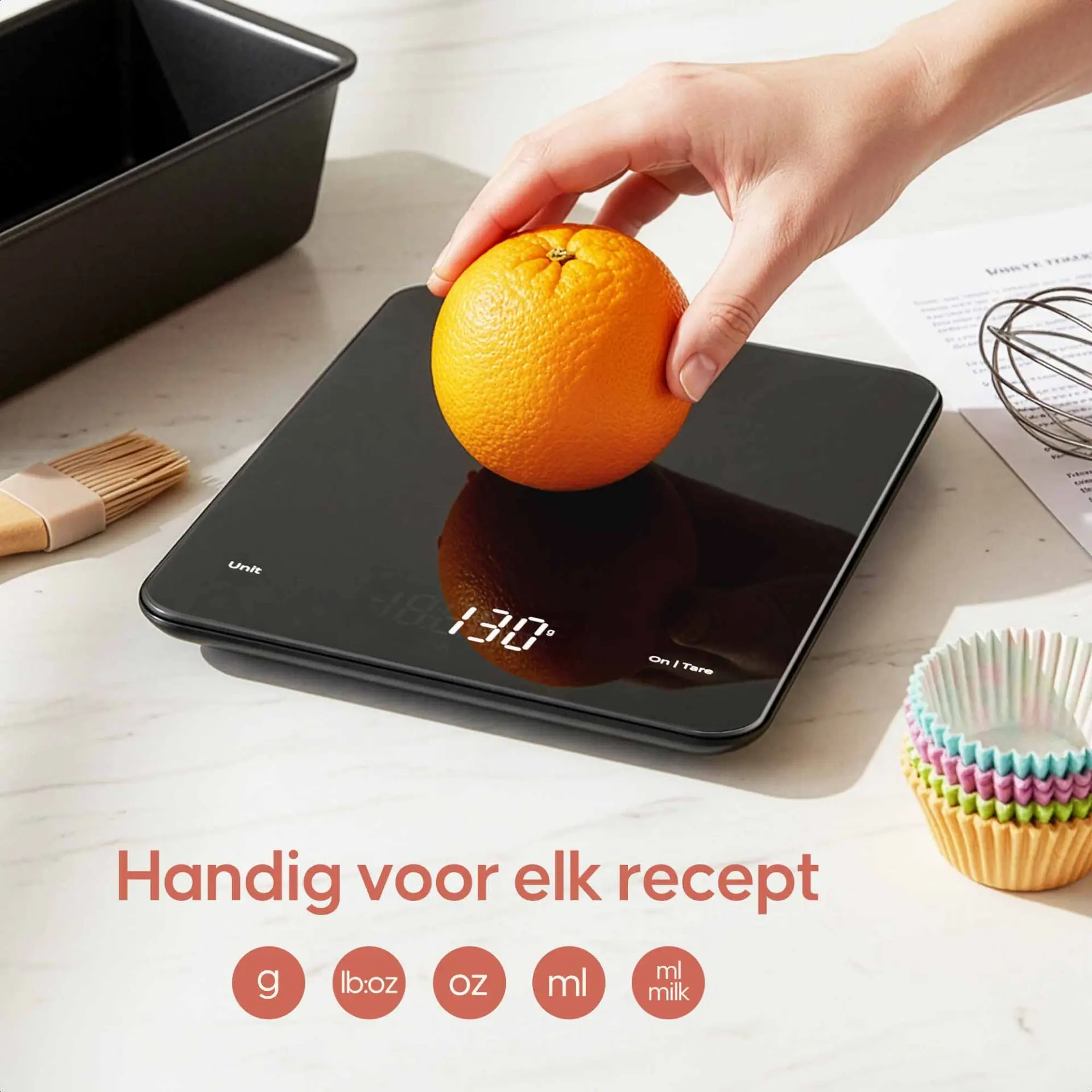 Ja, onze digitale keukenweegschalen zijn uitgerust met de functionaliteit om zowel vaste stoffen als vloeistoffen nauwkeurig te wegen. Dit maakt ze uitermate geschikt voor een breed scala aan kook- en baktoepassingen, van het afmeten van kruiden tot het meten van water of melk in milliliters.