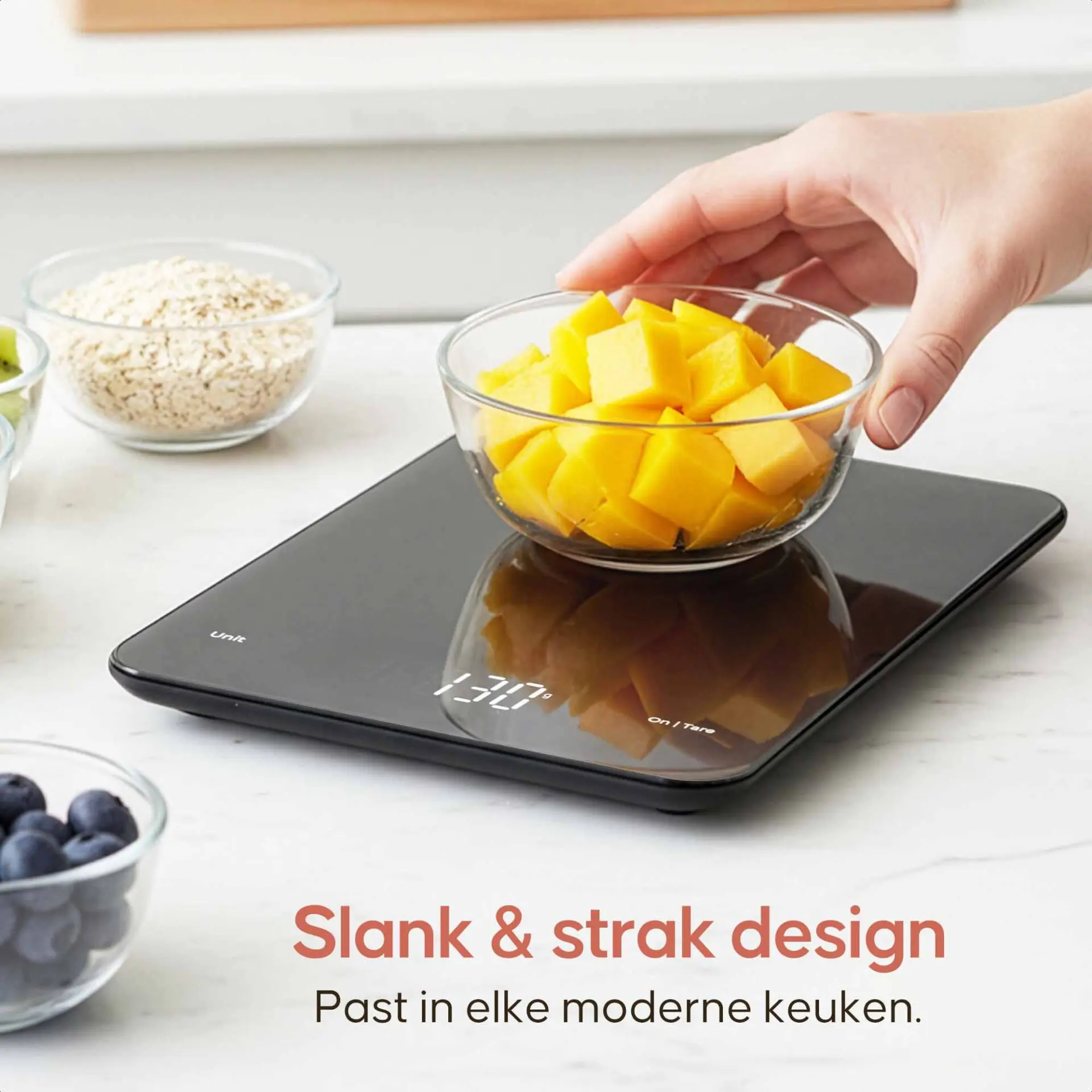 Ontdek hoe elke meting bijdraagt aan de perfectie van je baksels. Met onze digitale keukenweegschaal wordt elk ingrediënt precies afgewogen, waardoor je gerechten niet alleen heerlijk maar ook consistent zijn.