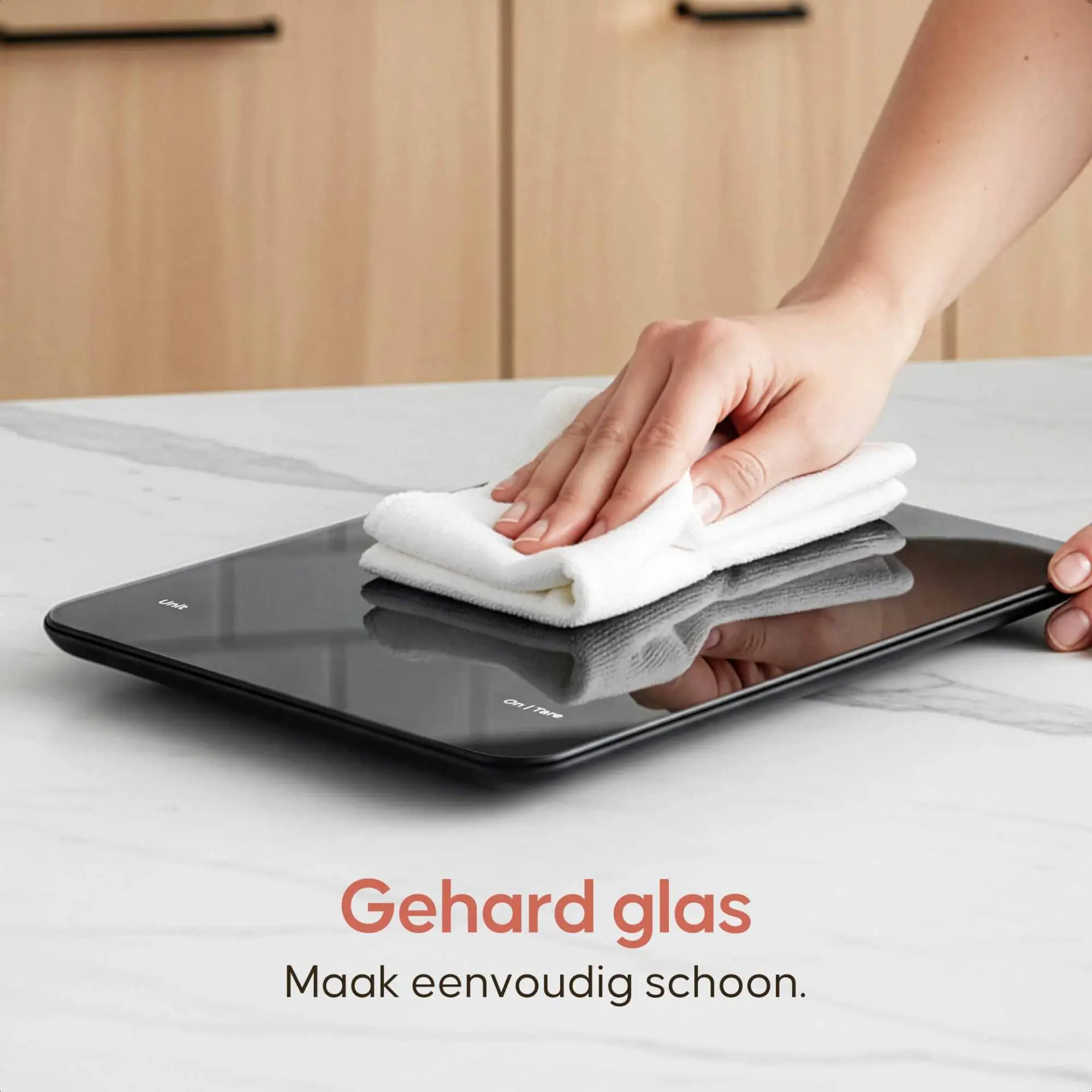 Onze digitale keukenweegschalen zijn ontworpen met het oog op gemakkelijk onderhoud. Veeg het oppervlak simpelweg af met een licht vochtige doek en een mild reinigingsmiddel. Vermijd het gebruik van schurende schoonmaakmiddelen of het onderdompelen van de weegschaal in water om de elektronische componenten te beschermen. Zo blijft je weegschaal makkelijk schoon en klaar voor gebruik.