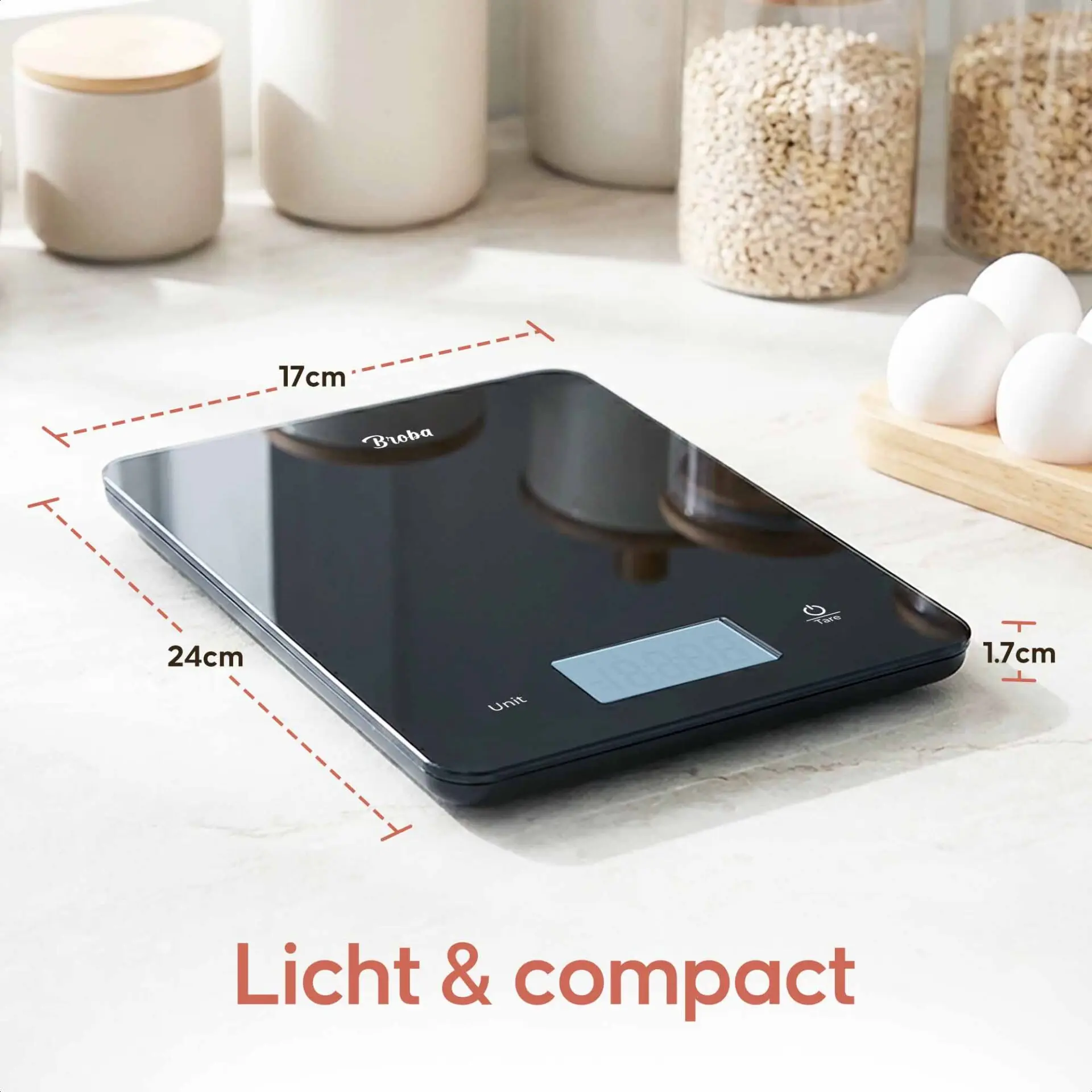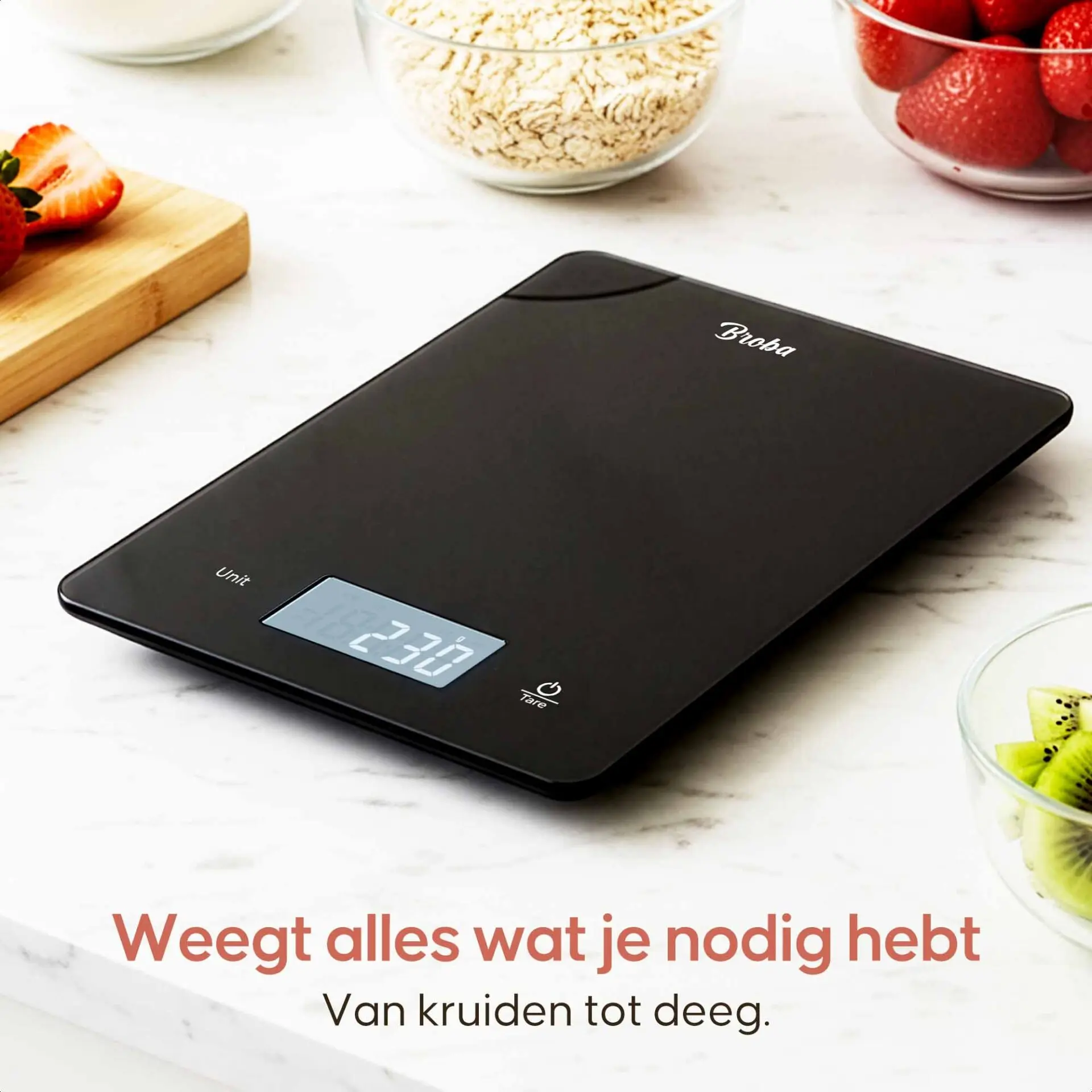 Stap in een wereld waar elke meting telt en elk recept de potentie heeft om een meesterwerk te worden. Met de Broba digitale keukenweegschaal wordt elke bakbeurt een stap dichter bij de bakperfectie die je altijd al hebt nagestreefd. Begin aan een reis waar precisie en passie samenkomen, en transformeer je bakkunsten van goed naar uitzonderlijk.
