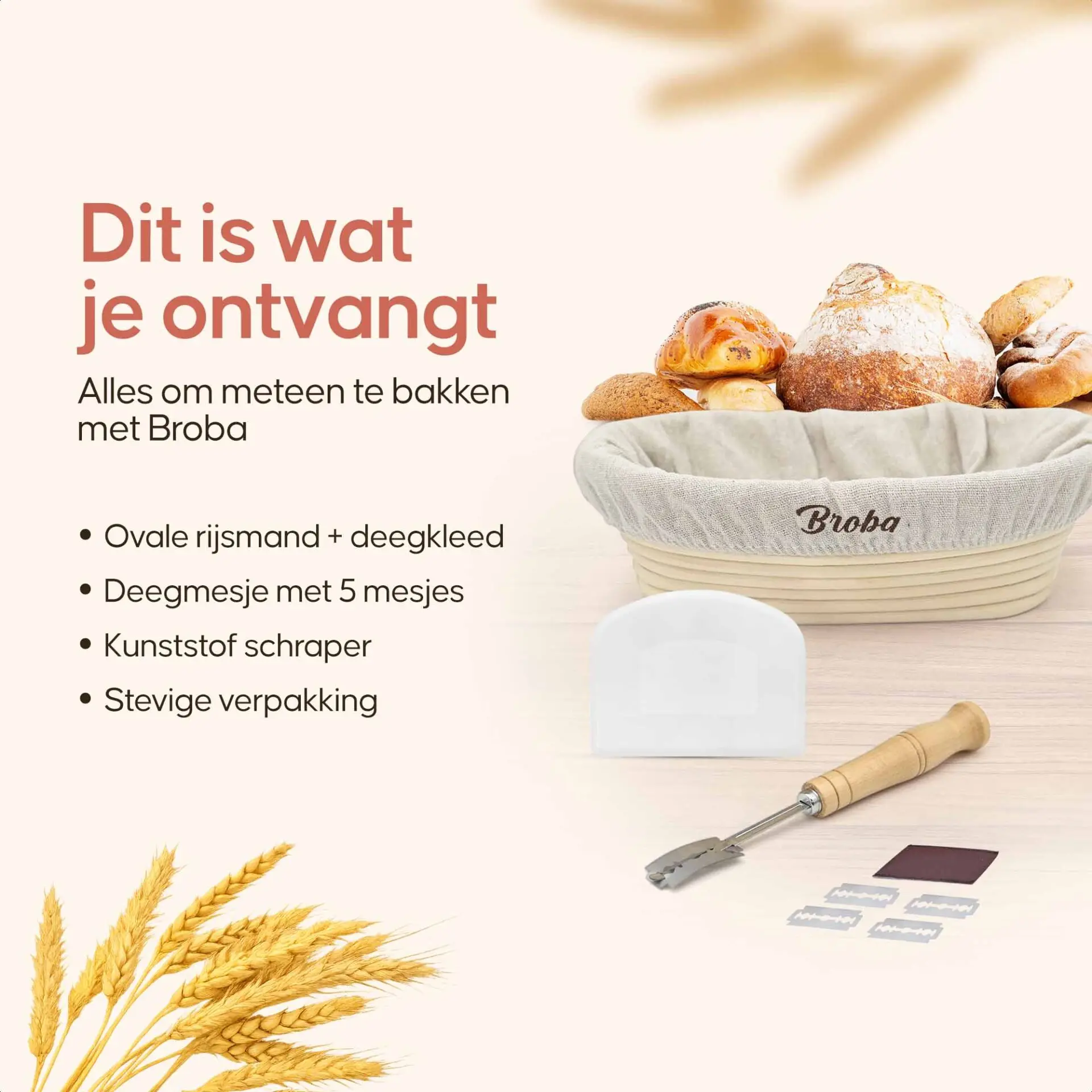 Met het meegeleverde deegmesje maak je voortaan zelf die inkepingen waardoor je brood prachtig openbarst in de oven.
